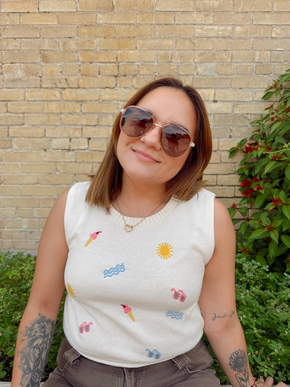 ELLE EMBROIDERED SLEEVELESS KNIT TANK