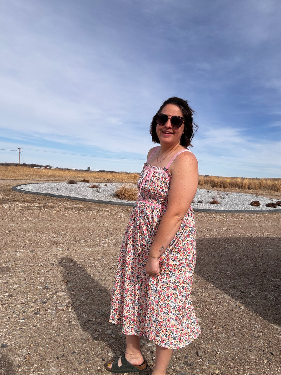 Get ready to bloom in style with our Veleveteen Floral Midi Dress. The vibrant pink floral pattern and adjustable velvet straps make it perfect for any occasion. The soft velvet details add a touch of elegance to this fun and flirty dress.