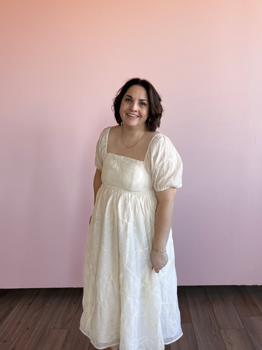 Flaunt your playful side with our White Lotus Embroidered dress. Its embroidered floral design and puff sleeves add a touch of whimsy to any occasion. Perfect for those who don't take themselves too seriously.