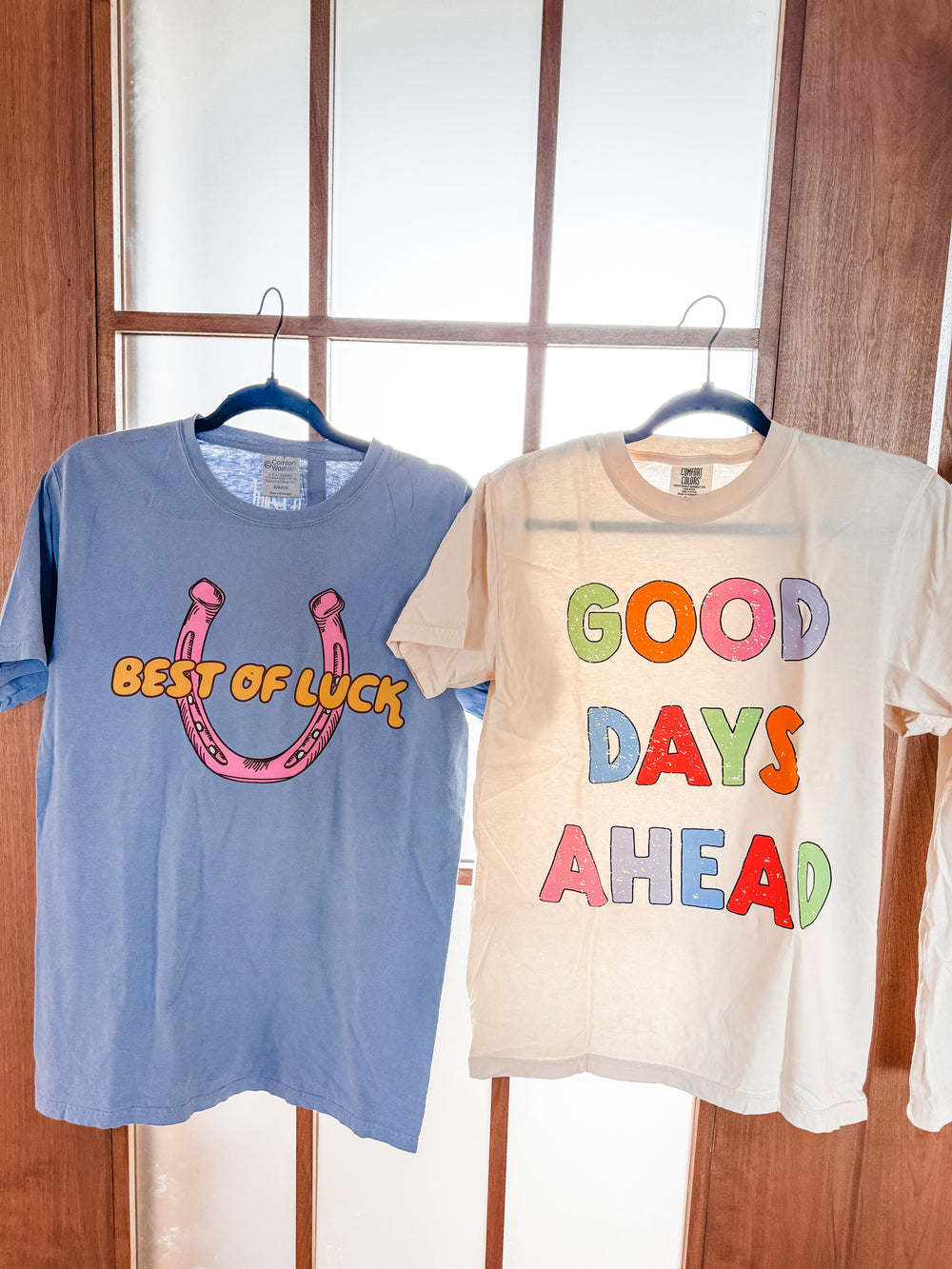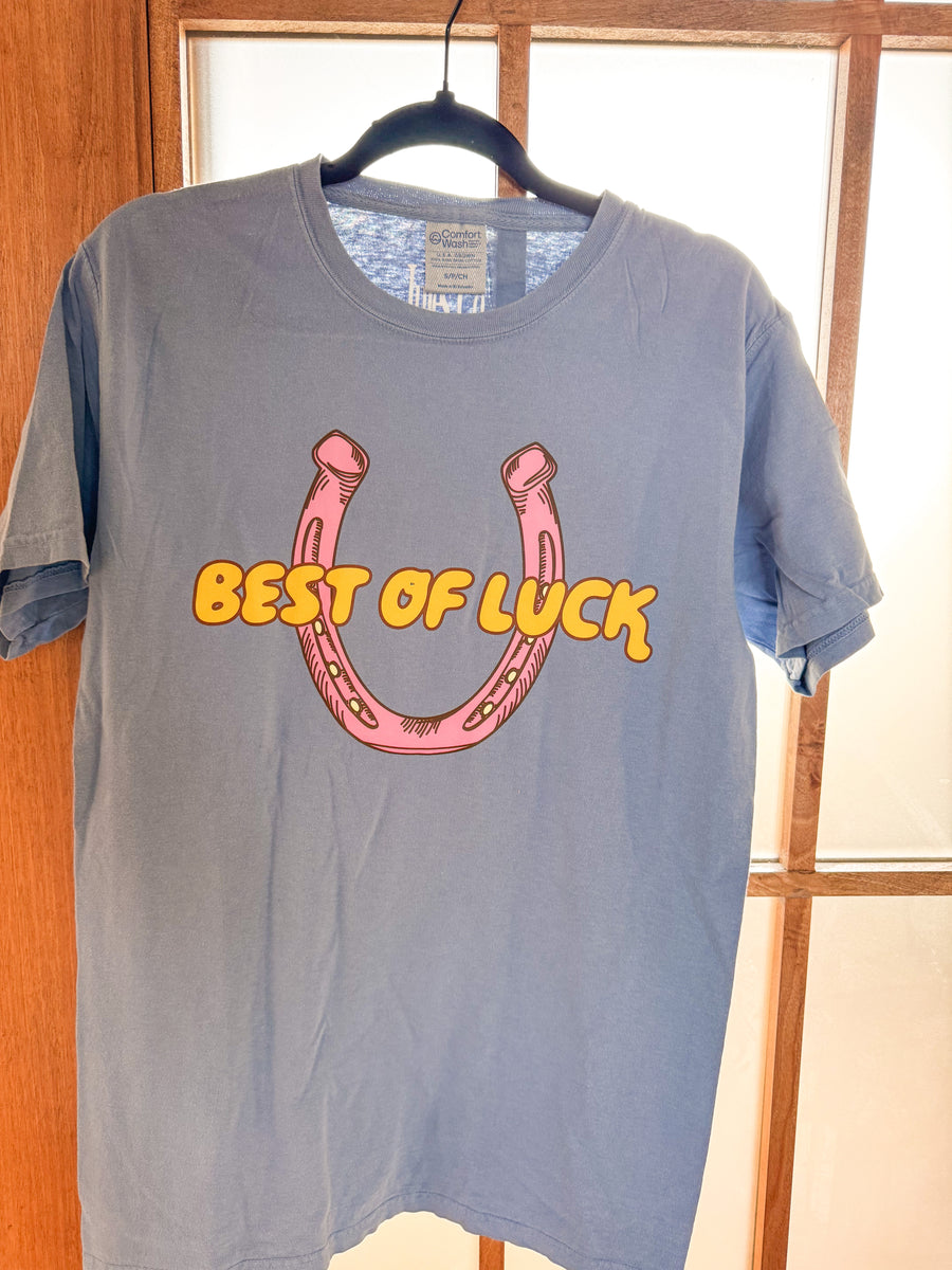 Wish someone luck with this quirky blue tee! Designed for comfort, this graphic tee will bring good vibes. (Get it? Best of luck? Good vibes? Wink wink.)