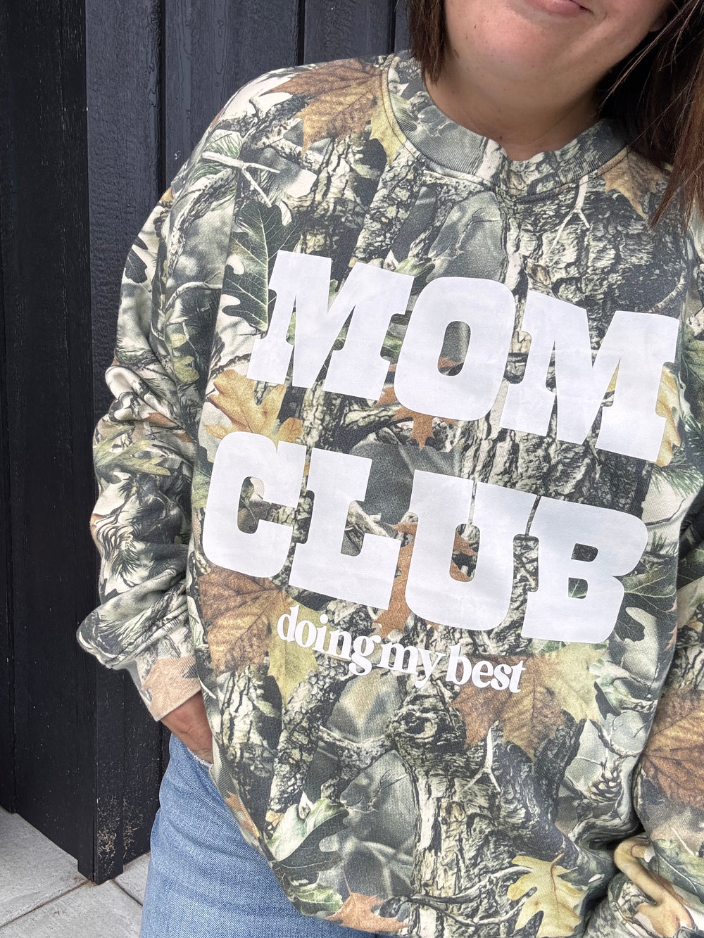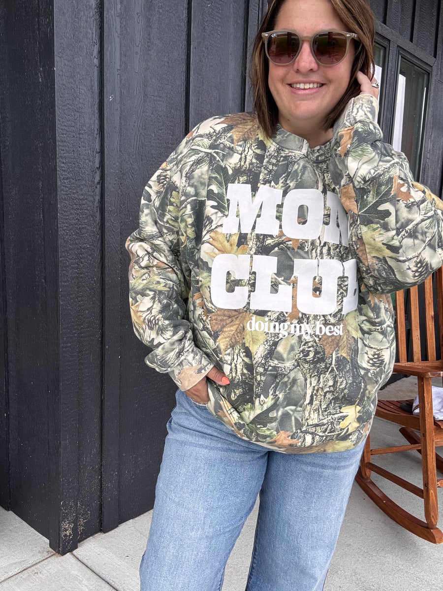 Join our Mom Club and show off your #momlife with our "Doing my best" crew. This camo graphic crewneck is the perfect addition to your wardrobe. Stay comfy and stylish while embracing the chaos of motherhood. (No need to thank us, we know you're killing it!)
