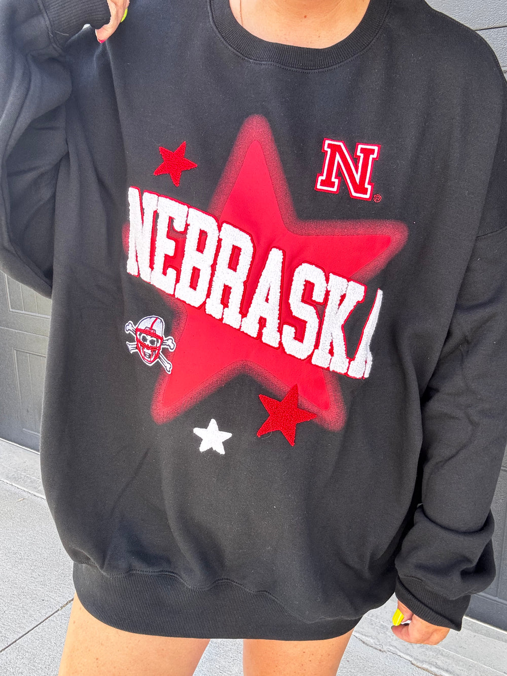 Get game day ready with the Nebraska Aura Crew! This oversized blackshirt features a bold star design that shines bright in the crowd. Perfect for showing off your team spirit while staying comfy and cool all day long. Whether you're cheering from the stands or hanging out with friends, this shirt brings the energy and style you need to own the game day vibe.