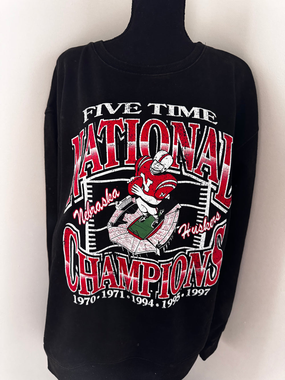 Celebrate the glory days with the Retro National Championship Crew, a vintage-inspired unisex sweatshirt that brings Husker football pride to life. Perfect for game day or casual wear, this cozy crewneck captures the spirit of championship victories with a playful nod to classic style. Show off your team loyalty while staying comfortable and stylish all season long.