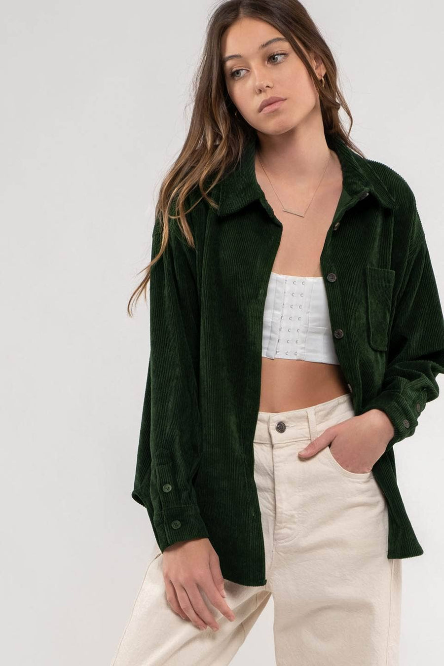 COLLARED NECKLINE - BUTTON UP - POCKET - NOT LINED - 97% POLYESTER 3% SPANDEX