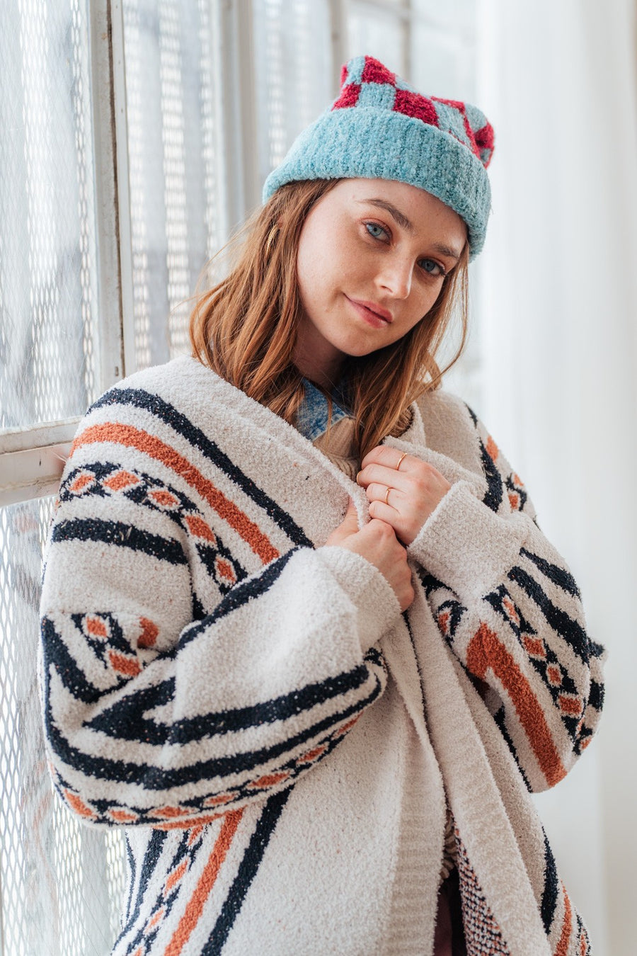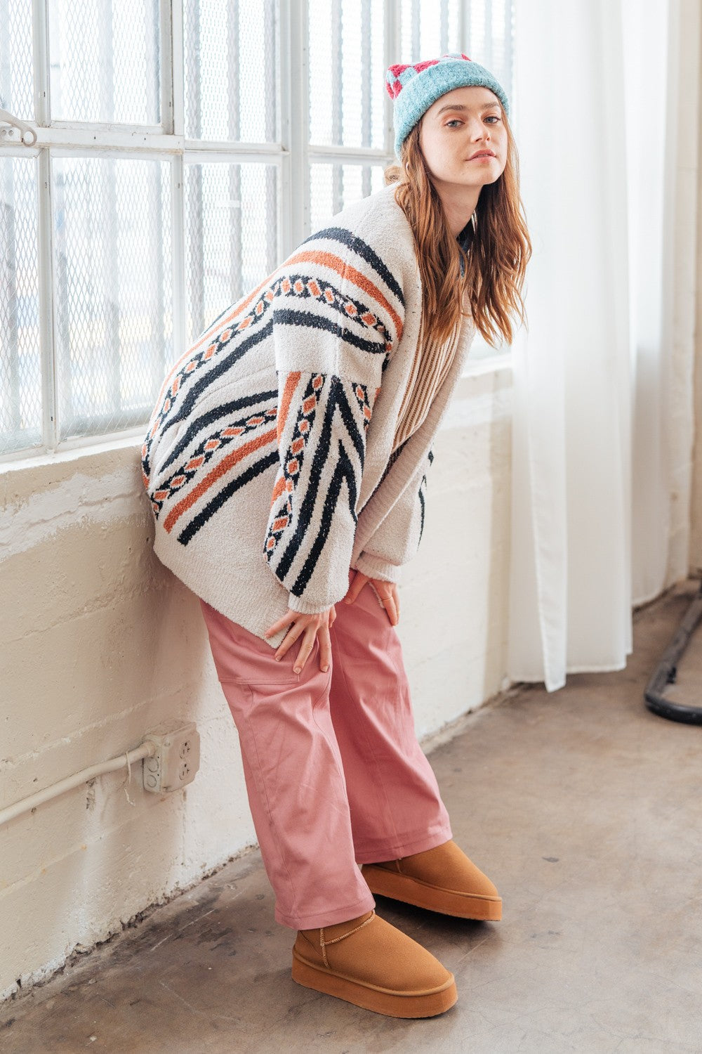 - Aztec Graphic Geometric Pattern Knit Sweater Cardigan