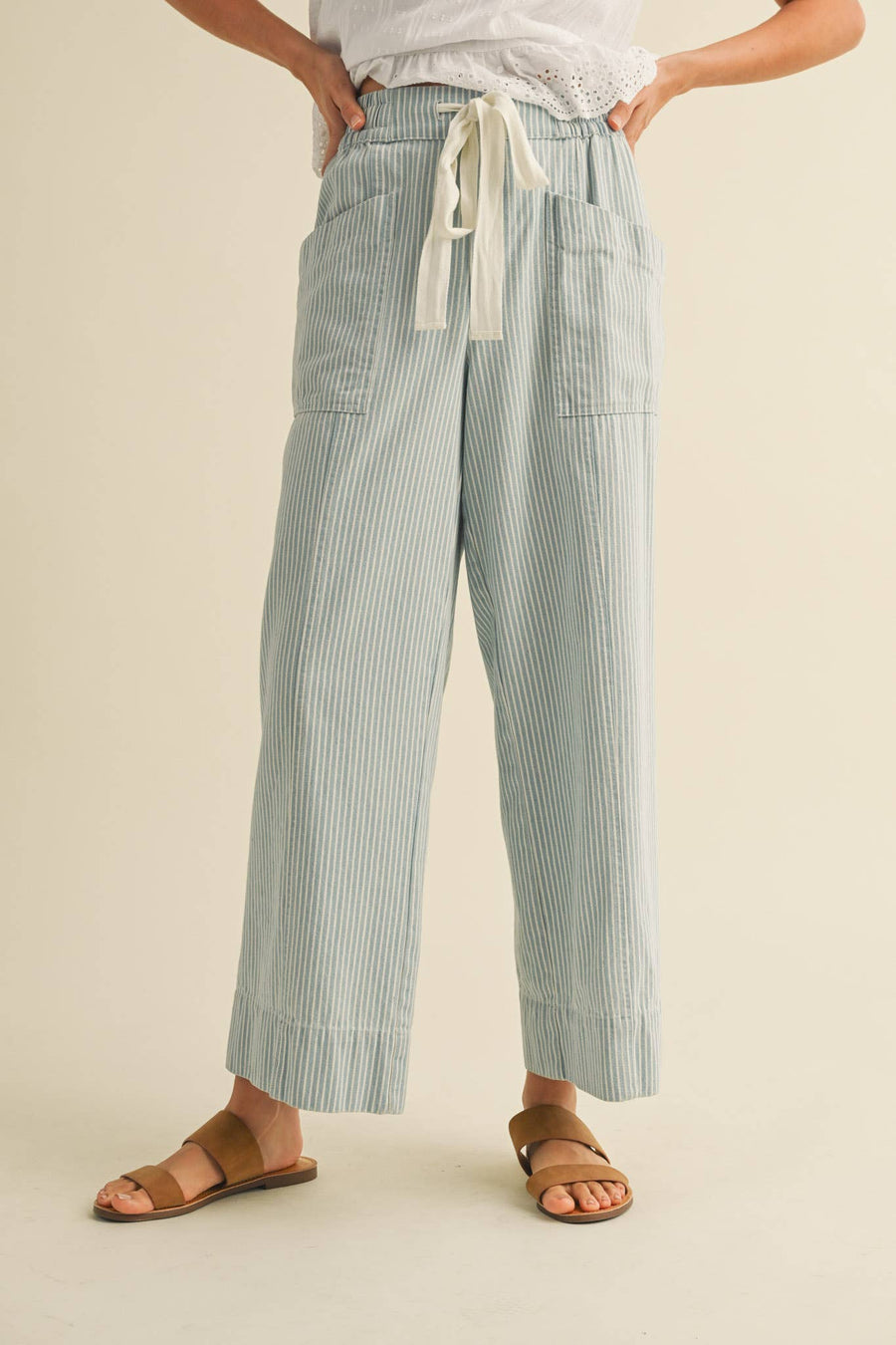 STRIPED WIDE LEG CROPPED PANTS