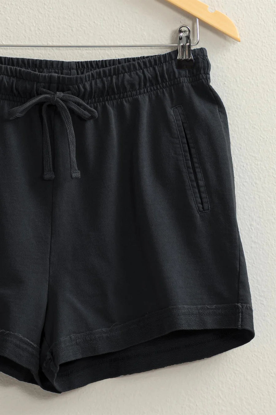 THESE SHORTS HAVE SIDE POCKETS AND A HIGH RISE FIT WITH A CONVENIENT DRAWSTRING THAT ALLOWS YOU TO ADJUST THE FIT EASILY. PLUS, THE PIGMENT GARMENT DYEING OFFERS A LIVED IN, VINTAGE CHARM THAT EXUDES EFFORTLESS STYLE.