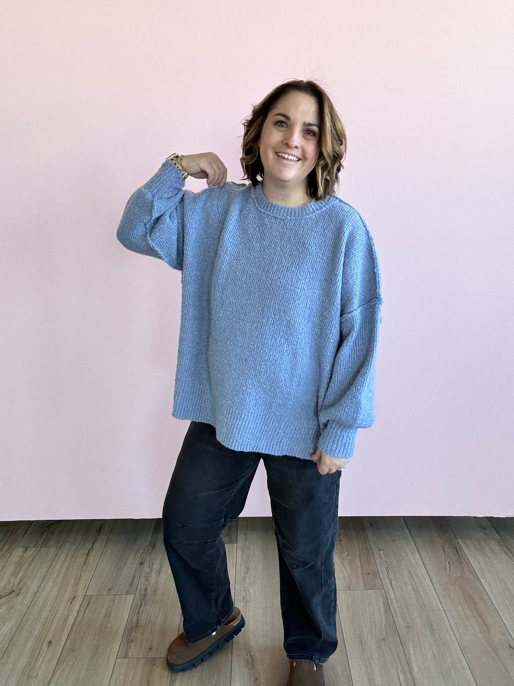 Get cozy with the Blue Betty Sweater! This soft, oversized sweater is perfect for chilly days. The textured design adds a unique touch to your outfit. Say goodbye to boring sweaters and hello to comfort and style!