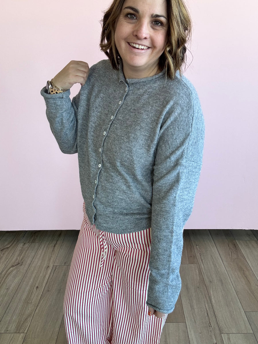 Stay on trend and cozy up in our Grey Piper Cardigan. This light weight, button down essential is perfect for any season. Don't miss out on this must-have piece!
