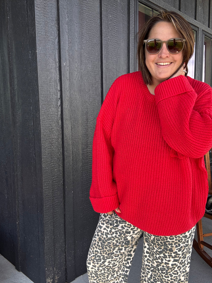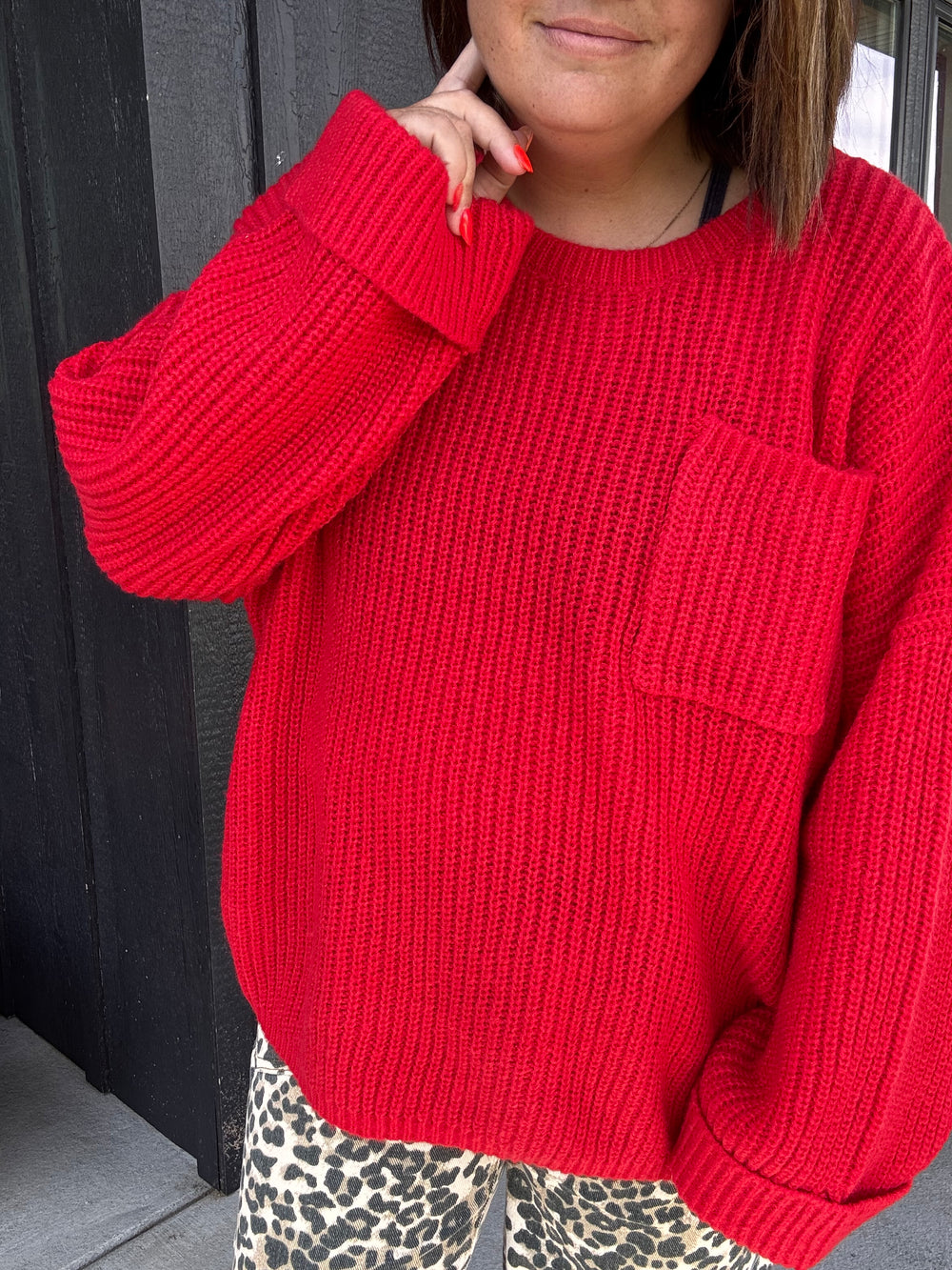 Embrace comfort with this oversized ribbed knit sweater, featuring dropped shoulders for a relaxed fit and a chic pocket detail. Ideal for layering over a collared shirt, this piece ensures style and versatility. Pair with leather shorts or jeans for a balanced, casual look. Perfect for transition-season layering or a cozy night in. 79% polyester 21% acrylic