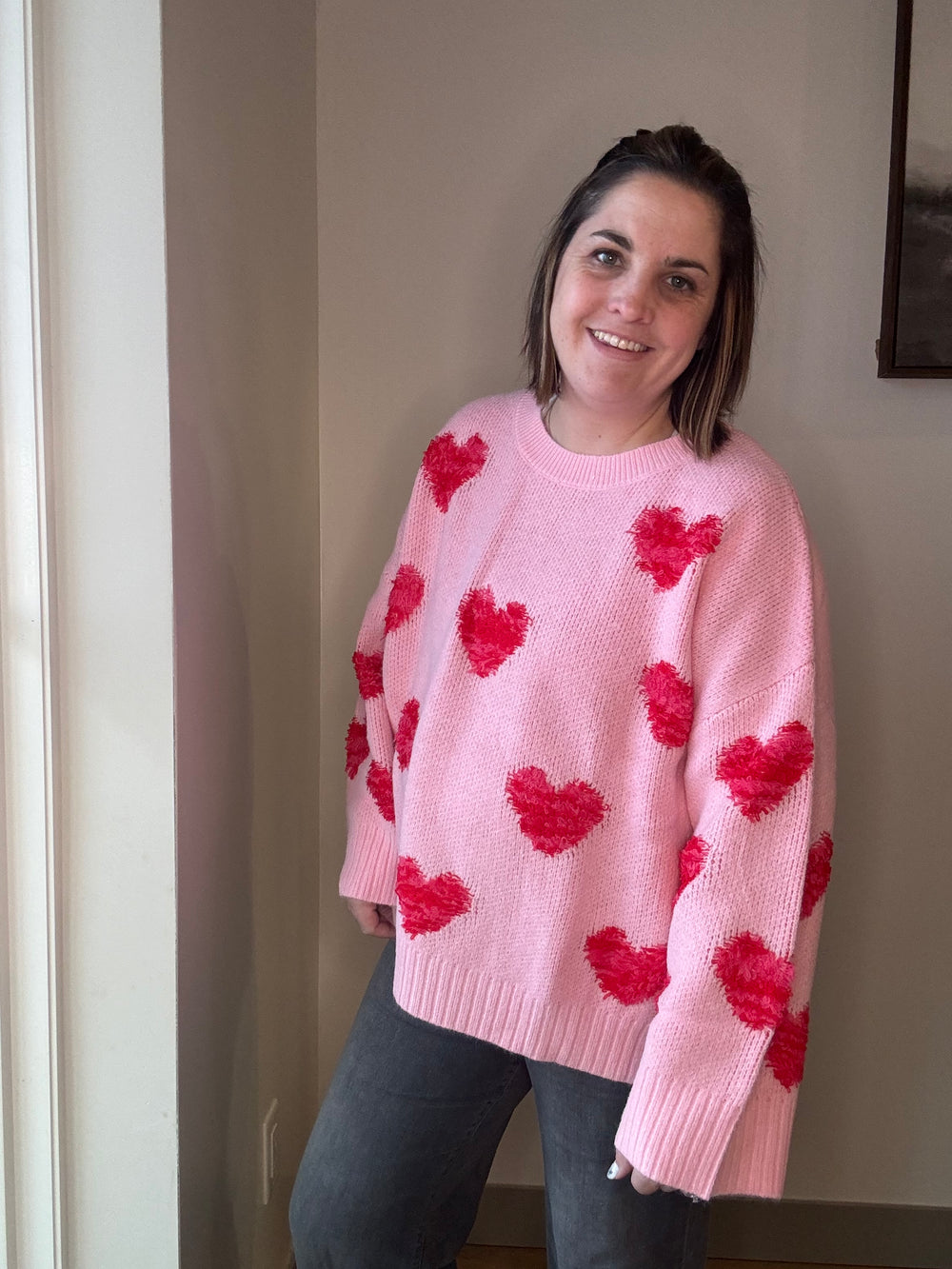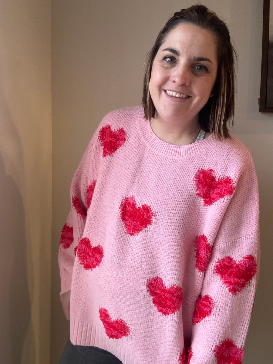 Oversized, soft fabric, pink...say less! This sweater is the perfect piece to wear for Valentine's day or year around.