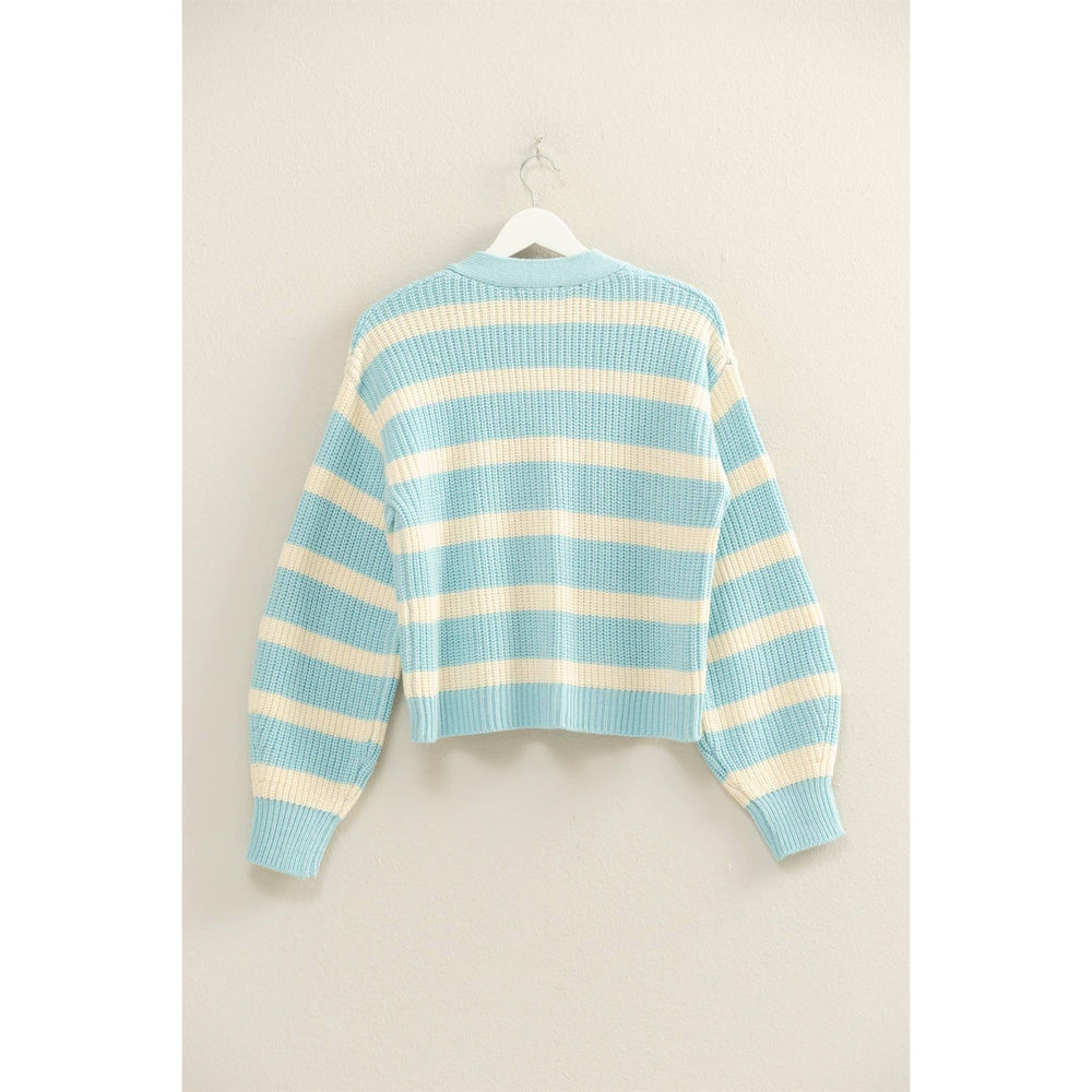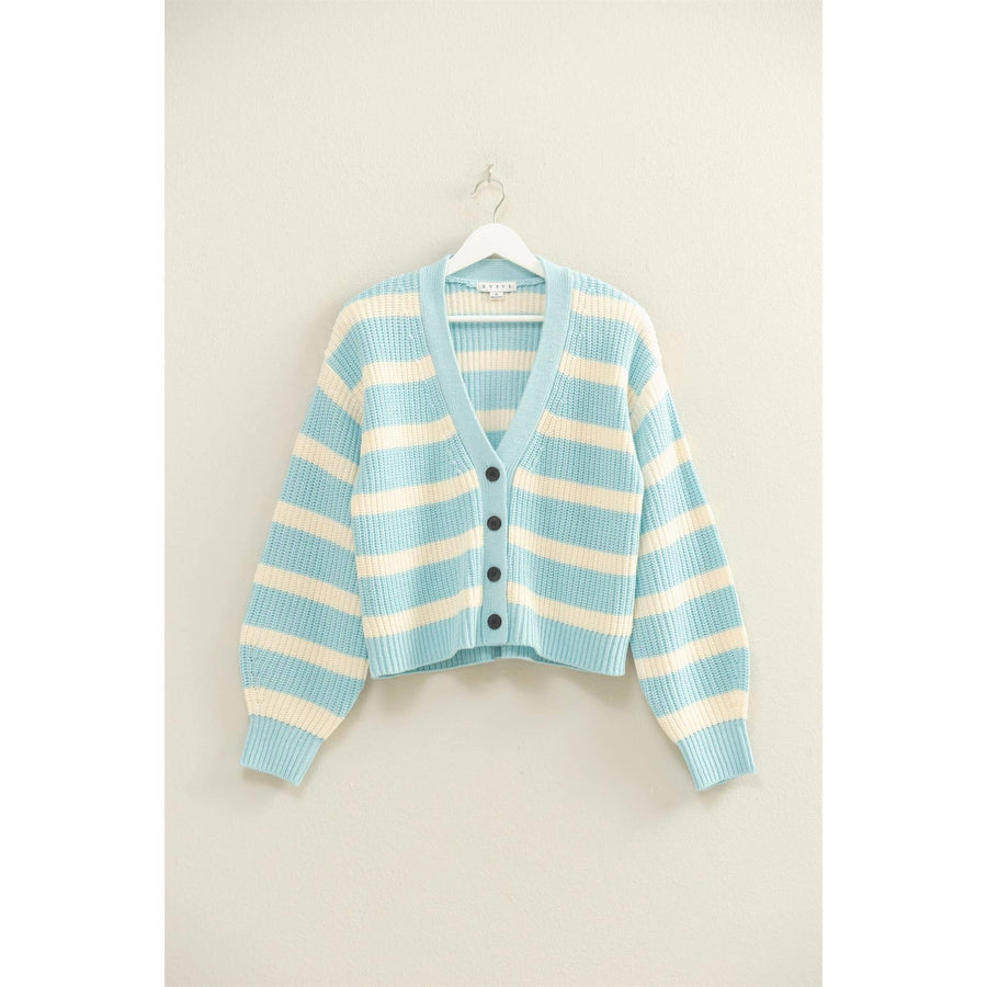 This stylish cardigan-style cardigan combines form and function with a casual yet sophisticated flair. Featuring a buttoned front and a comfortable relaxed fit, the sweater carries vivid horizontal stripes for a striking visual effect. Versatile and ideal for layering, pair it with your favorite denim or casual trousers for a classic but fashionable look. Perfect for both a breezy day out or as a cozy layer on chilly evenings.