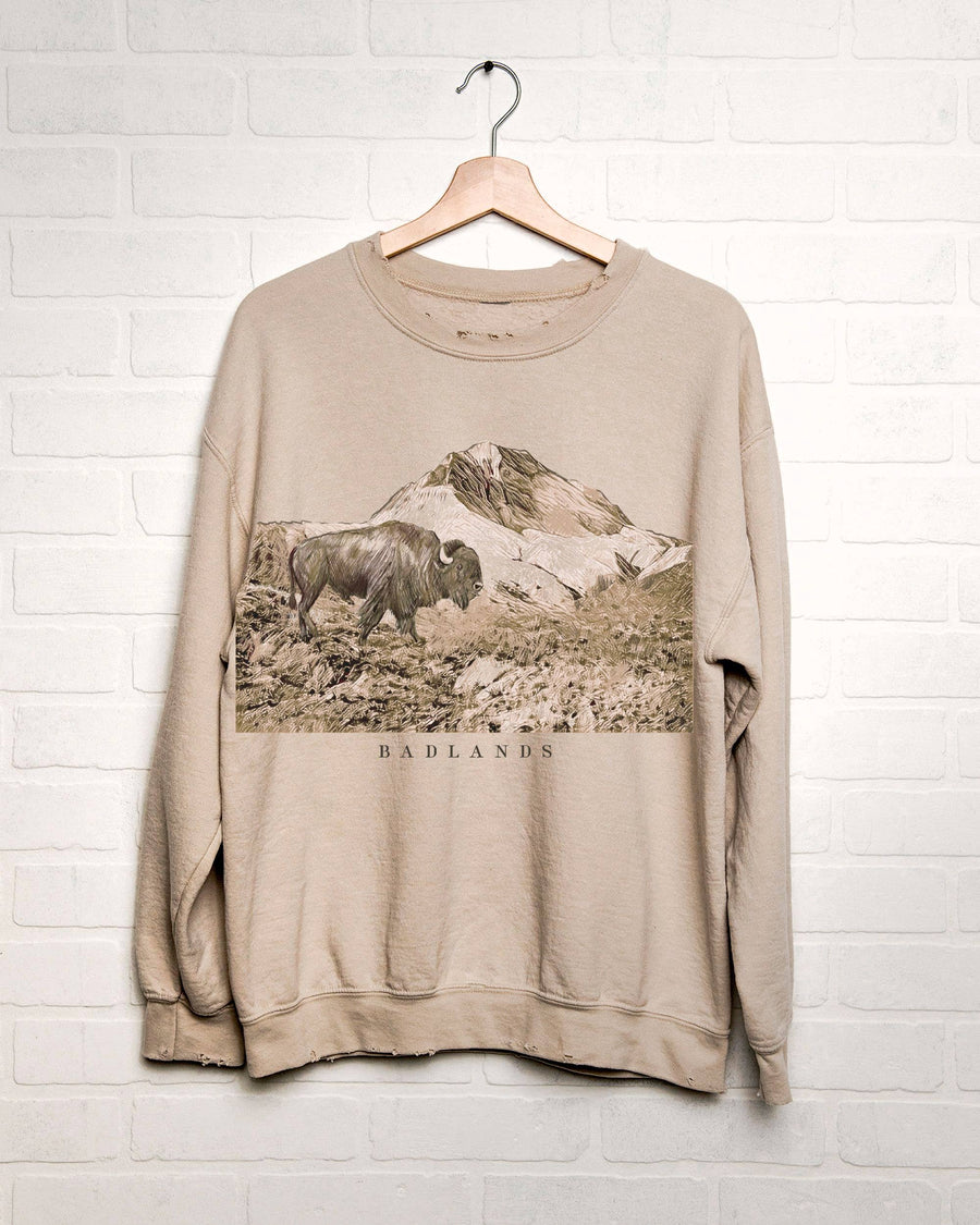 Badlands Bison Sand Thrifted Graphic Sweatshirt