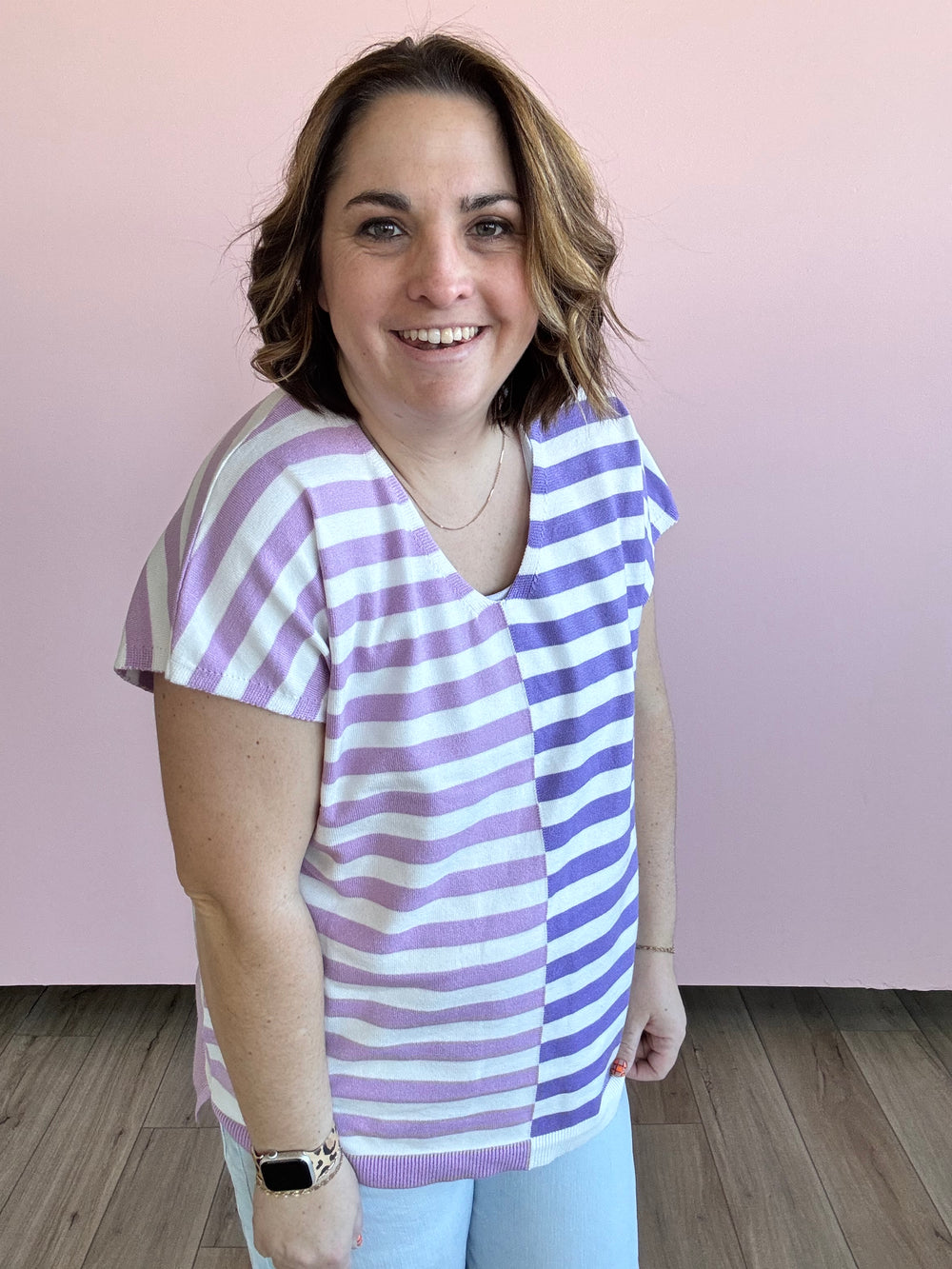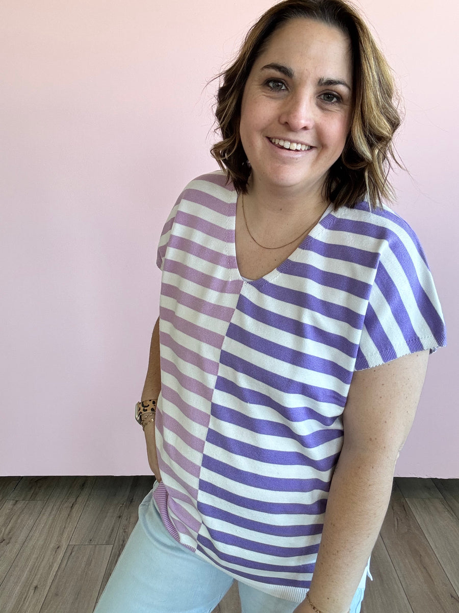 Add some color to your wardrobe with the Purple Line Sweater vest! Perfect for a fun and trendy spring look. Stand out from the crowd and stay stylish in this quirky and playful piece.