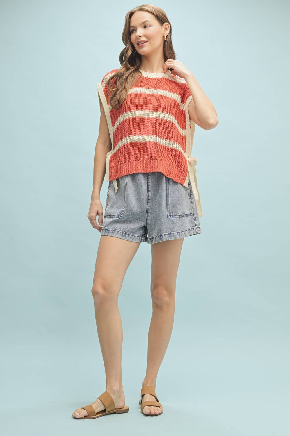 SWEATER VEST WITH SIDE SELF TIE STRAPS - SLEEVELESS, RELAXED, COMFORTABLE, EASY, SUMMER, SPRING, CASUAL, EVERYDAY