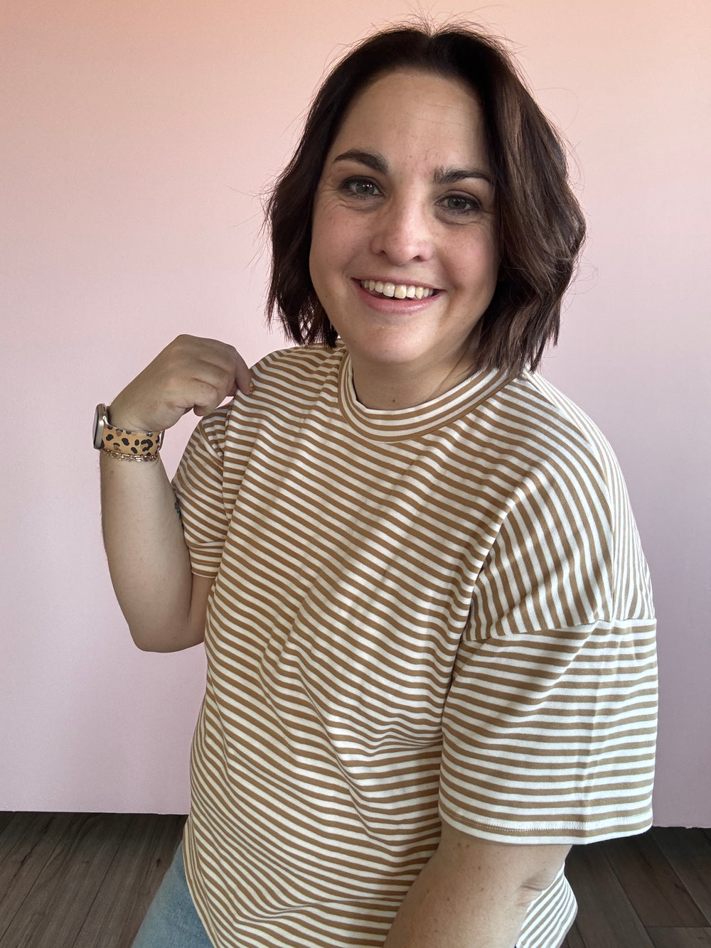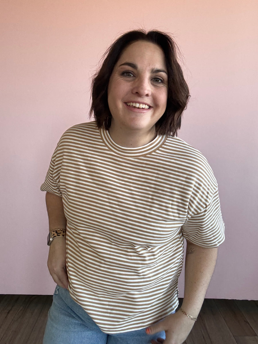 This cozy t shirt is softer than your tan lines. With stylish stripes, it's perfect for lounging or making a statement.