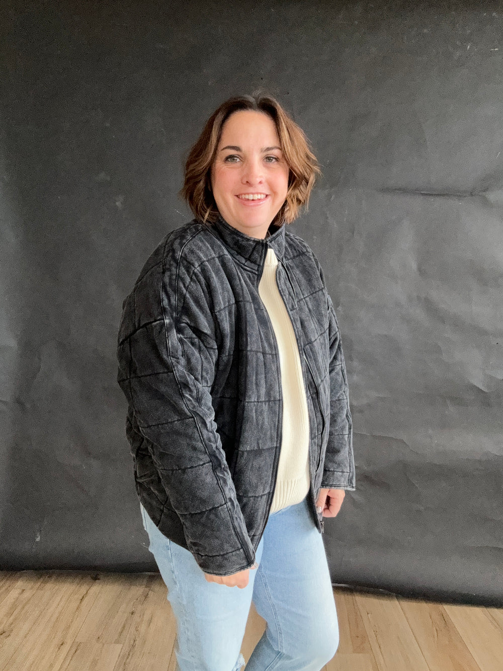 Introducing the perfect quilted washed oversized Dixie jacket features a thoughfully crafted design that strikes the ideal balance between fashion-forward and comfort. The oversied silhouette exudes a relaxed and laid-back vibe while the dolman sleeves add a touch of sophistation and uniqueness. The material is made from high-quality 100% cotton fabric that is pleasant to the touch and surely to turn heads wherever you go.