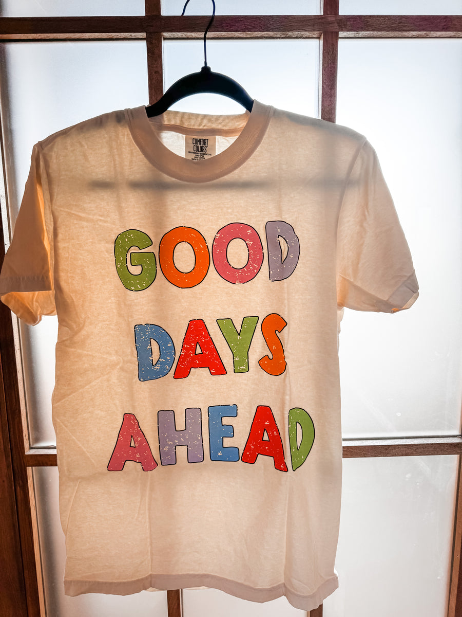 Embrace good days ahead in our colorful, graphic tee. Perfect for bringing cheer to any outfit.