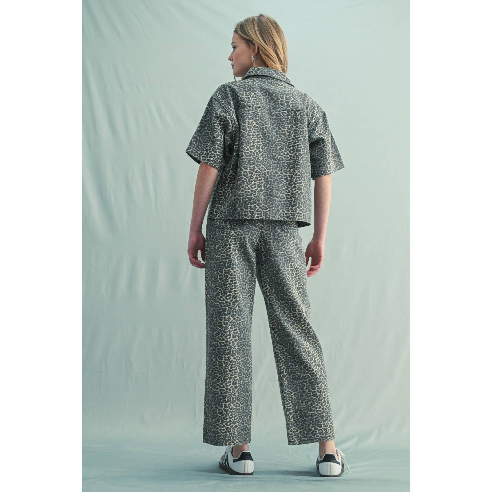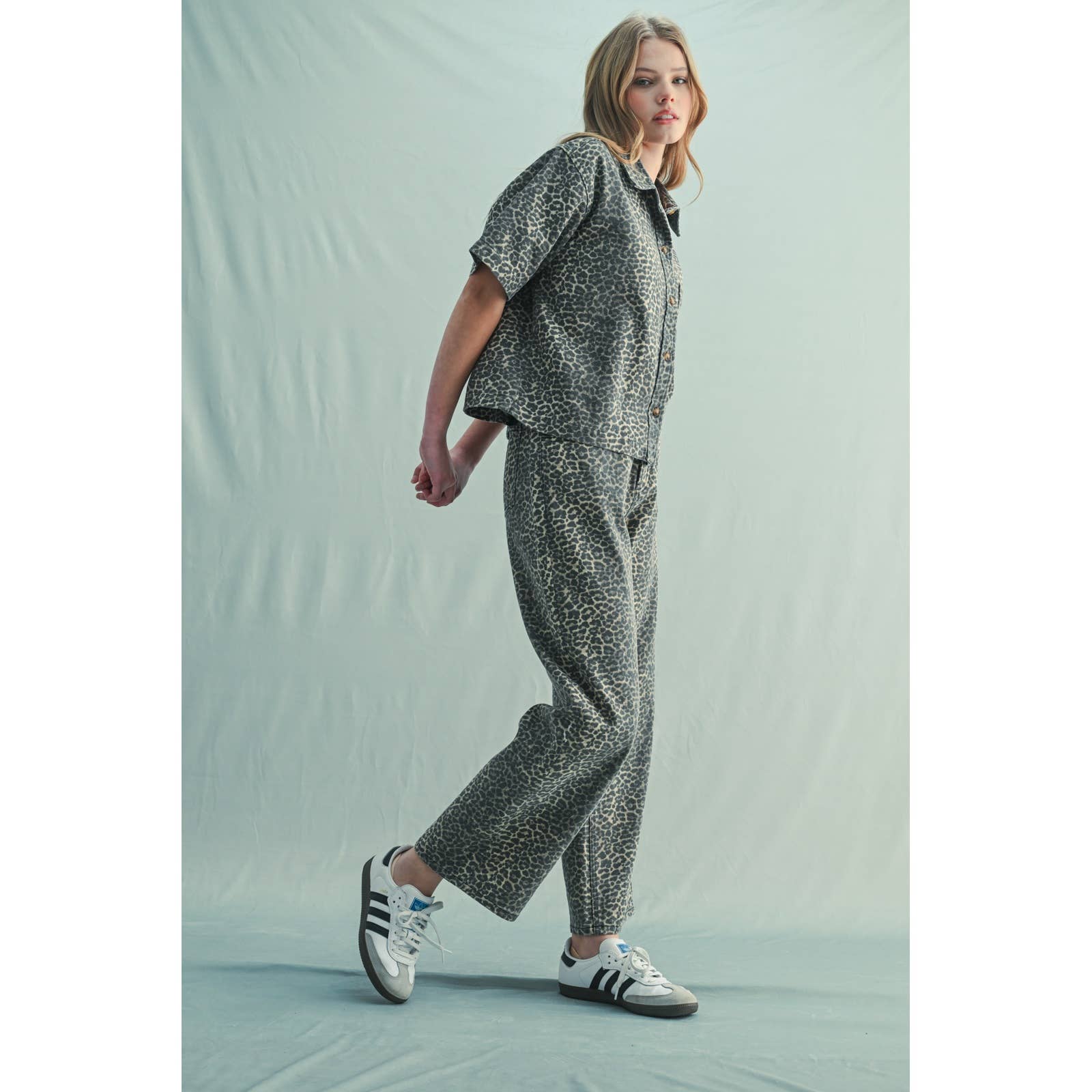 LEOPARD BUTTON-UP DENIM SHIRT - FUNCTIONAL BUTTONS, COLLARED, CAN BE PAIRED WITH WL25-10677 100% COTTON *PRE-ORDER 08/31 - ALL COLORS * Due to lighting and differences in monitors, actual colors may vary slightly from what appears online.