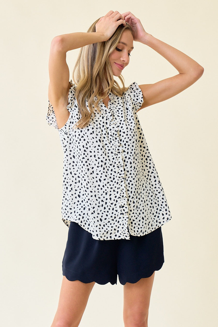 SMOCKED PRINT FRILLED TOP SELF:100%POLYESTER TOTAL LENGTH 26 3/4"| BUST 19"| SHOULDER 12 1/2"