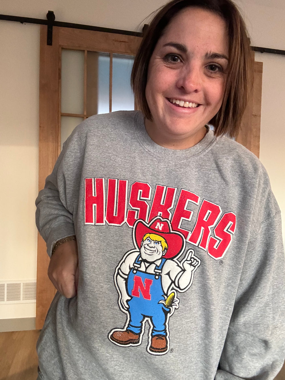 This Nebraska Huskers Cartoon Mascot Gray Thrifted Sweatshirt is made with a 50/50 blend of Preshrunk Cotton and Polyester and features intentional distressing. Each piece is unique, so colors and distressing may vary from shirt to shirt. It has a unisex fit and pairs well with vintage denim and your favorite sneakers. Details include an officially licensed design.